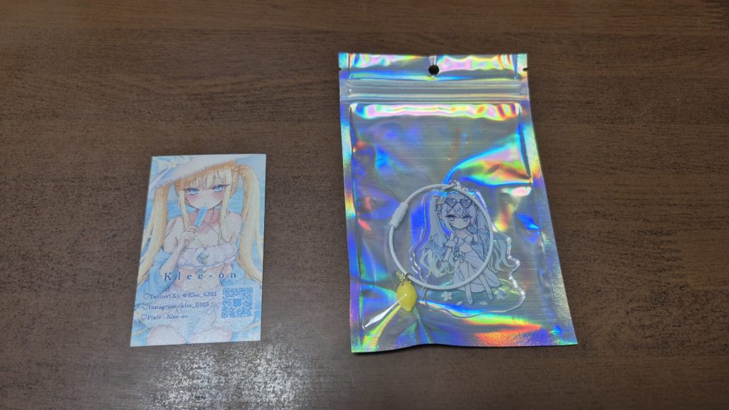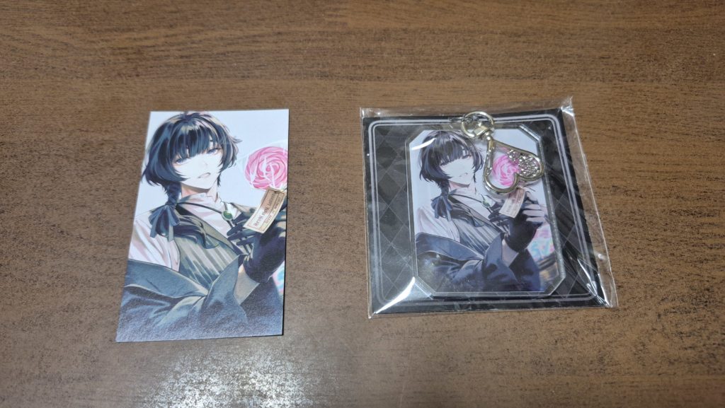 アクキーは2種類あり、どちらにするか迷ったのですが、自己紹介カードが金髪のキャラだったので、それとは違う方を選択しました。